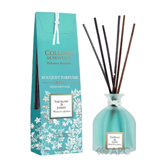 Аромадифузор Collines de Provence Білий чай і жасмин C2801TBJ 100 мл — це неймовірний мікс свіжих ароматів. Стильний скляний аромадифузор з ротанговими паличками наповнить вашу оселю приємним запахом, інтенсивність якого можна регулювати, змінивши кількість паличок у флаконі. Такий елемент декору має вишуканий та естетично привабливий вигляд.