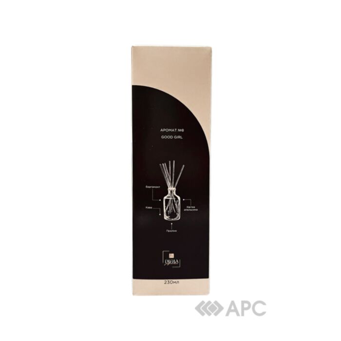 Аромадифузор Diera 8 230 мл освіжає повітря в приміщенні та наповнює його приємними запахами. Елегантна скляна пляшечка дозволяє контролювати вміст, а палички додають цікавої конфігурації виробу. Об’єм пляшечки забезпечує тривале використання, а її вигляд стильно доповнює сучасний інтер’єр. Diera стане ідеальним рішенням для зміни якості повітря в спальні, вітальні, передпокої чи офісі та подарує неймовірний аромат. Ноти бергамота, кави, квітки апельсина та праліне наповнюють простір теплом та природним запахом. Аромадифузори та декор для дому можна придбати в нашому інтернет-магазині з доставленням в усі населені пункти України.