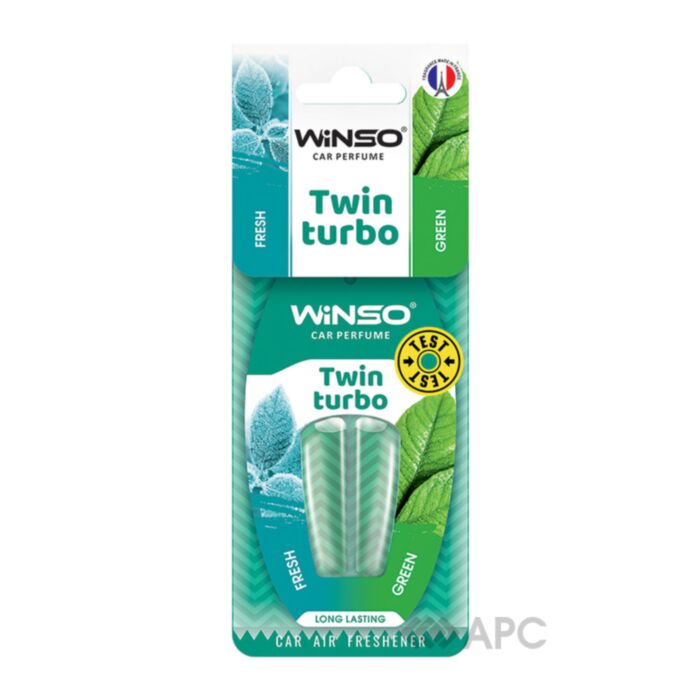 Ароматизатор з подвійною капсулою Winso Twin Turbo 538750 Fresh & Gren — це унікальне поєднання кольору, форми та запаху, яке дарує насолоду не лише нюховим відчуттям людини, але і радують око досконалістю відтінків та плавністю ліній. Водій в дорозі може часто відчувати дискомфорт від неприємного запаху, який видають функціональні системи транспорту. І підвішений до дзеркала заднього виду ароматизатор може легко виправити ситуацію, наповнивши простір ненав'язливими, але глибокими та натуральними нотками улюблених фруктів, квітів і масел.