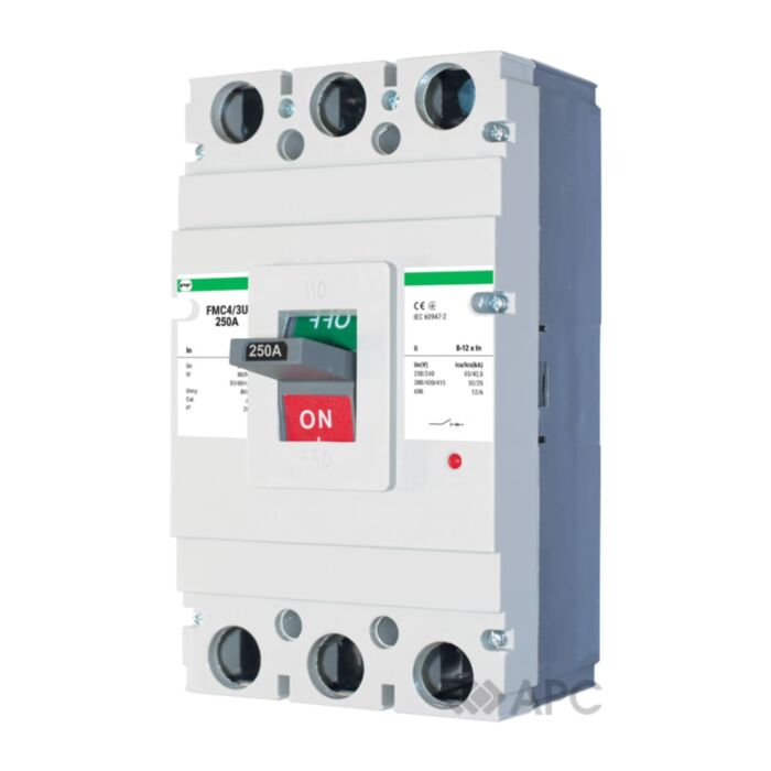 Автоматичний вимикач Промфактор FMC43U0250 FMC-4 250А 50кА використовується для виконання функції запобігання і управління. Він захищає кабелі, дроти та користувачів електроприладами від перевантаження і струму короткого замикання, а також використовується для швидких комутацій електричних ланцюгів. Апарат застосовується у ввідно-розподільчих установках.