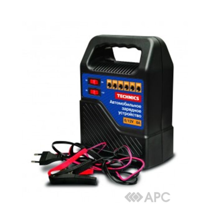 Автомобільний зарядний пристрій AC01,6В / 12В, 4/6 / 8A TECHNICS 52-290 використовується для заряджання акумуляторних батарей з потужністю в 6 В і 12 В, без яких не обходяться мотоцикли, легкові автомобілі та інші механічні засоби. Прилад оснащений системою захисту від коротких замикань, захистом від перезарядки і функцією безперебійної підзарядки. Індикатори сповіщають про стан пристрою.