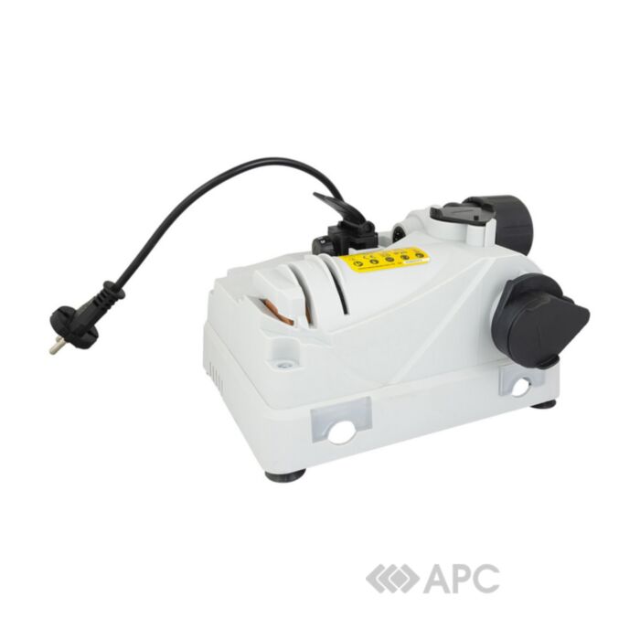 Багатофункціональний пристрій для заточення ножів та свердел Mastertool — це прилад, що допоможе підгострити металеві вироби сухим способом, у домашніх, побутових умовах. Дуже простий у користування, оброблену деталь потрібно тримати руками, тому ви самі корегуєте рівень підгострювання. Має два контейнери для забору пилу. Заточує свердла від 3 до 13 мм та сокири з вузьким лезом. Обертання здійснюється зі швидкістю 28,5 м/с.