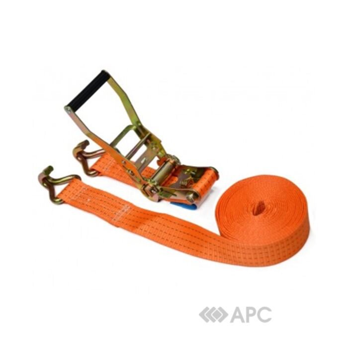 Стрічка багажна виконана з міцного синтетичного волокна, двох гачків і сталевої тріскачки. Всі металеві елементи покриті антикорозійним складом, тому не бояться вологи, а саме полотно стрічки незважаючи на компактну вагу, легко регулюється і витримує велике навантаження в кілька тонн.