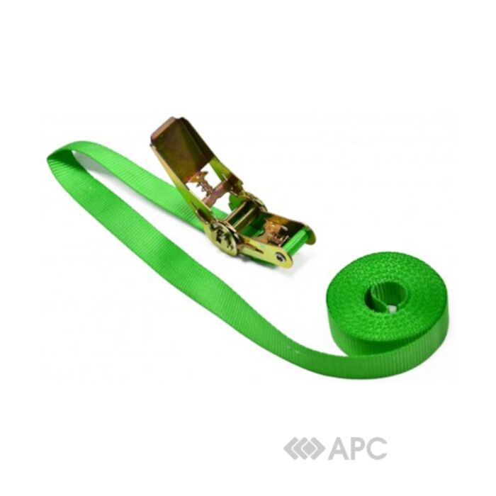 Стрічка багажна виконана з міцного синтетичного волокна, двох гачків і сталевої тріскачки. Всі металеві елементи покриті антикорозійним складом, тому не бояться вологи, а саме полотно стрічки незважаючи на компактну вагу, легко регулюється і витримує велике навантаження в кілька тонн.