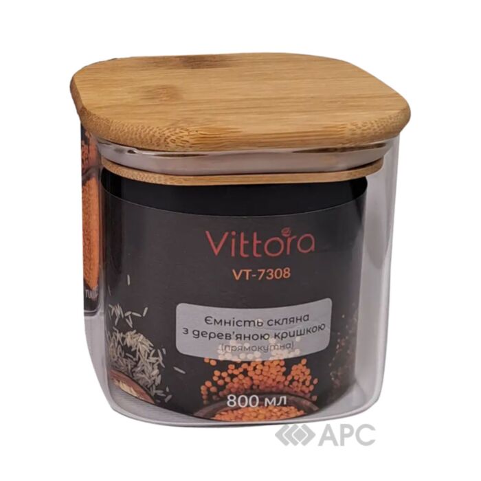 Ємність для зберігання з дерев'яною кришкою Vittora VT-7308 призначена для зберігання сипучих продуктів будь-яких видів - від цукру і солі до різноманітних круп і бобових. Виготовлена з міцного скла, що робить її якісною і довговічною. Вона буде добре виглядати на вашій кухні, завдяки стильному дизайну. Підходить для миття в посудомийній машині.