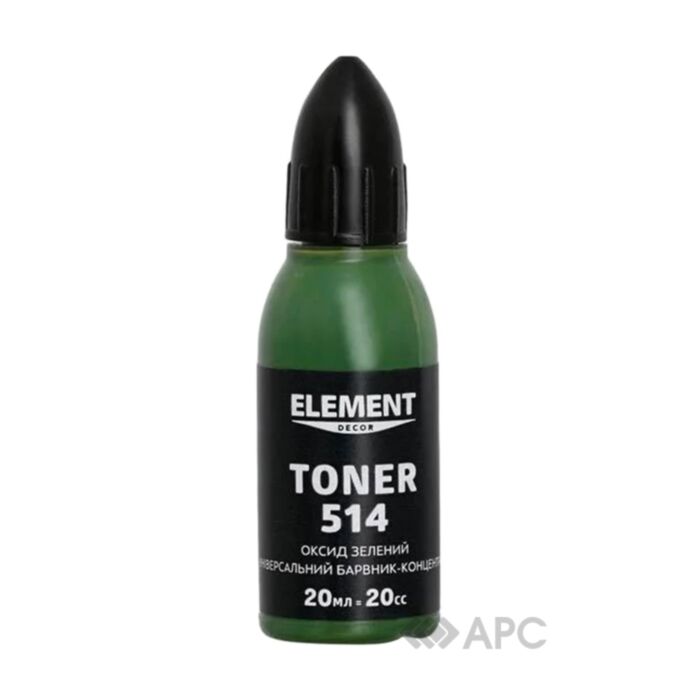 Барвник Element Decor Toner 514 оксид зелений 20 мл належить до лінійки вишуканих декоративних покриттів та штукатурок, які виробляються з використанням італійських технологій та екологічної сировини перевіреного походження. Продукт є універсальним концентратом і ідеально підходить для здійснення тонування всіх видів водно-дисперсійних лакофарбових матеріалів для інтер'єру та фасадів, штукатурок, шпаклівок, будівельних розчинів. Варто зазначити, що тонуванню піддаються тільки готові продукти.