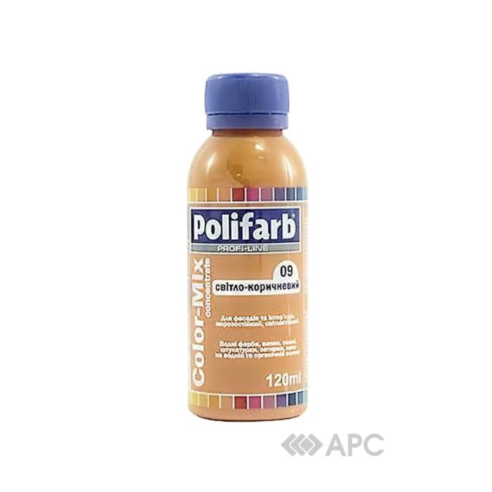 Барвник Polifarb ColorMix 09 світло-коричневий 0,12 л використовується для отримання необхідного відтінку фарб. Продукція характеризується високими показниками стійкості до впливу ультрафіолету та атмосферних опадів. Консистенція кольорового пігменту в пасті максимально оптимізована під основне завдання: отримання готової фарби з великою покривною здатністю та необхідного кольору. Компанія пропонує широку гамму колерувальних систем. Їх змішування в суворо прорахованих пропорціях дозволяє отримати будь-який відтінок.