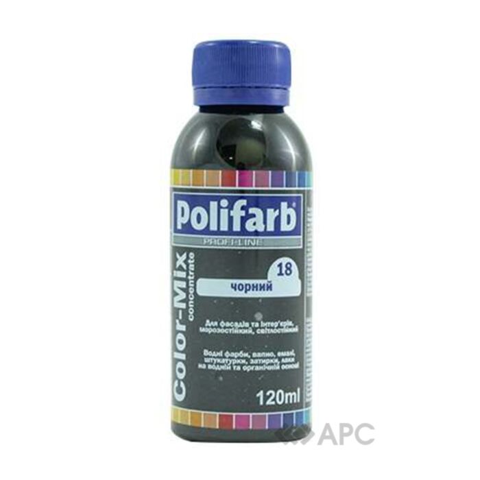 Барвник Polifarb ColorMix 18 чорний 0,12 л використовується для отримання необхідного відтінку фарб. Продукція характеризується високими показниками стійкості до впливу ультрафіолету та атмосферних опадів. Консистенція кольорового пігменту в пасті максимально оптимізована під основне завдання: отримання готової фарби з великою покривною здатністю та необхідного кольору. Компанія пропонує широку гамму колерувальних систем. Їх змішування в суворо прорахованих пропорціях дозволяє отримати будь-який відтінок.