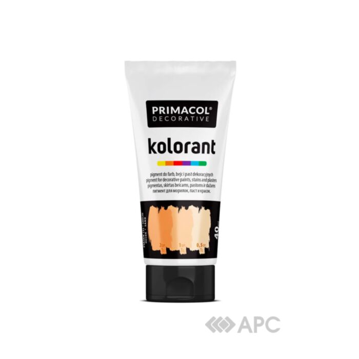 Барвник універсальний Primacol Decorative абрикосовий 40 мл належить до лінійки вишуканих декоративних покриттів та штукатурок, які виробляються з використанням італійських технологій та екологічної сировини перевіреного походження. Продукт є універсальним концентратом і ідеально підходить для здійснення тонування всіх видів водно-дисперсійних лакофарбових матеріалів для інтер'єру та фасадів, штукатурок, шпаклівок, будівельних розчинів. Варто зазначити, що тонуванню піддаються тільки готові продукти.