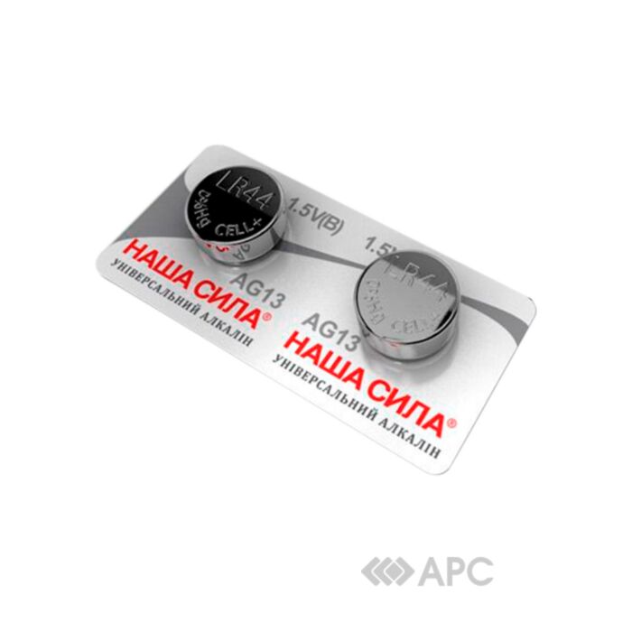 Батарейка Наша сила AG13 LR44 1,5V 2 шт. - універсальний алкаліновий елемент живлення, який підходить для застосування в пристроях будь-якого типу, починаючи зі складного цифрового обладнання і закінчуючи звичайними годинниками. Виріб має збалансовані характеристики, оскільки струм розряду стабільно сприймає навантаження різного опору.