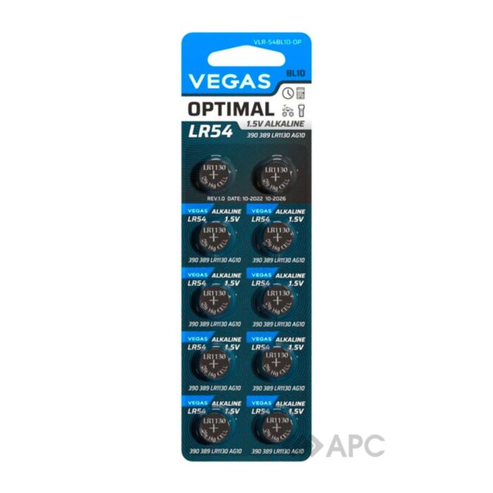 Батарейки Vegas LR54 VLR-54BL10-OP 1 шт - універсальний алкаліновий елемент живлення, який підходить для застосування в пристроях будь-якого типу, починаючи зі складного цифрового обладнання і закінчуючи звичайними годинниками. Виріб має збалансовані характеристики, оскільки струм розряду стабільно сприймає навантаження різного опору.