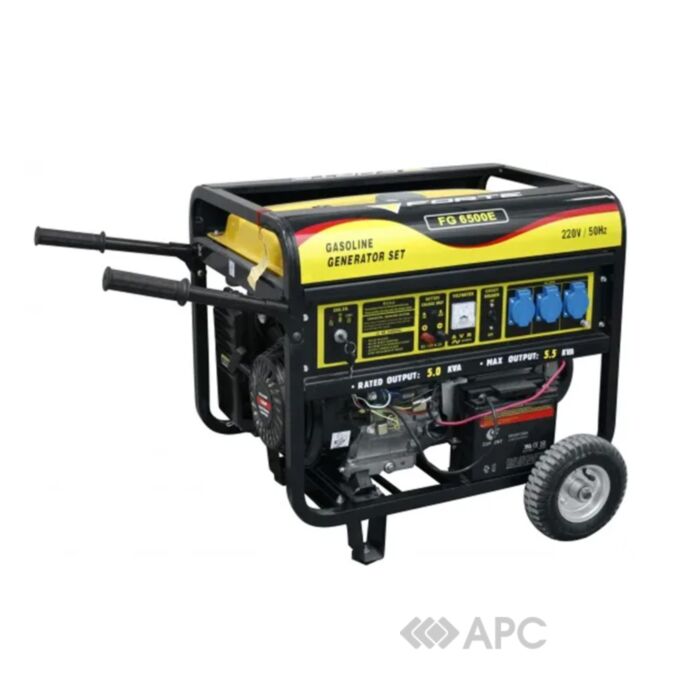 Бензогенератор Forte FG6500Е 5 кВт - незамінний в якості аварійного джерела живлення при зникненні напруги на основній лінії електропостачання. Модель має 4-х тактний одноциліндровий двигун з електростартером. Його номінальна потужність складає 5 кВт. Загальне підключене навантаження при цьому не повинно бути більше 5.5 кВт. Для роботи необхідно паливо (бензин), яке заливається в бак об'ємом 25 л.