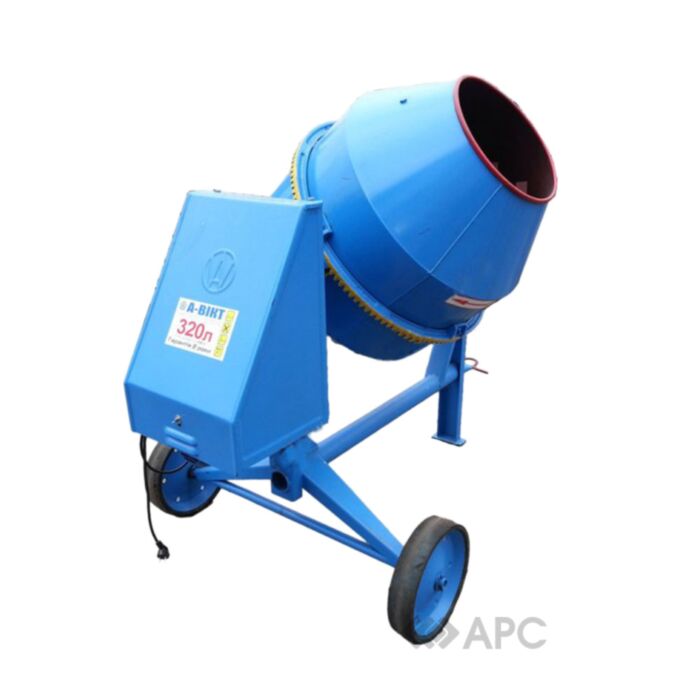 Бетонозмішувач А-Вікт BWA-200 320 л - обладнання з потужним двигуном (1,5 КВт), посилене стійкою зварною рамою. У конструкції використовується ремінна передача, яка знижує чутливість до перепадів напруги.