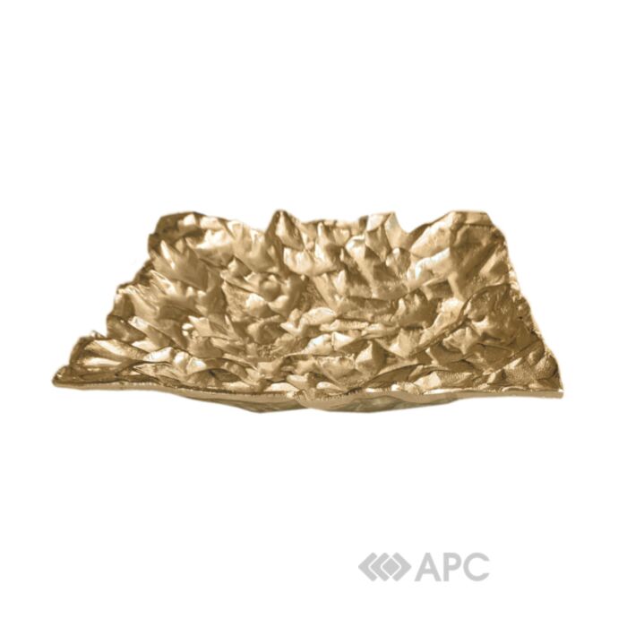 Блюдо Olens Крафт золото — це чудовий посуд для сервірування, а також цікавий та оригінальний декоративний елемент. Поєднує в собі елегантний дизайн, високу якість, практичність. Виготовляється з міцного металу з золотистим покриттям, містить нестандартний м’ятий вигляд та квадратну форму. Вирізняється чудовою стійкістю, а також довговічністю. Його гладка поверхня забезпечує легкий догляд, що зручно у використанні. Забороняється використовувати у посудомийній машині. Завдяки дорогому вигляду може слугувати прекрасним подарунком для різних випадків, від весілля до ювілею.