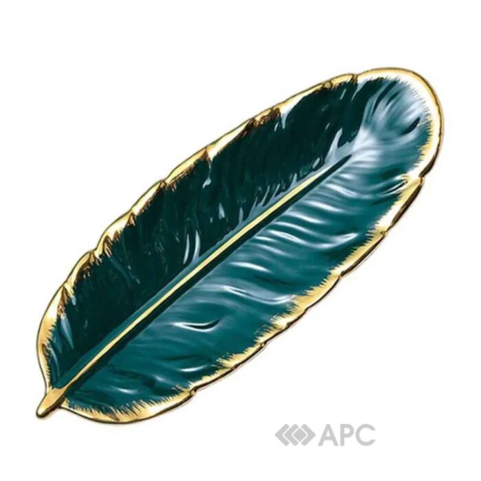 Блюдо Olens Зелене перо DL21022528 12,5*36*2,5 см виконане з кераміки покритої зеленою глазур'ю, яка надає виробу багатий та стильний зовнішній вигляд. Завдяки елегантному золотому обідку тарілка виглядає максимально ефектно та може стати головною окрасою святкового столу з сервіровкою будь-якого рівня. Купити керамічне блюдо можна у нашому інтернет-магазині. Швидка доставка здійснюється у будь-який куточок України.
