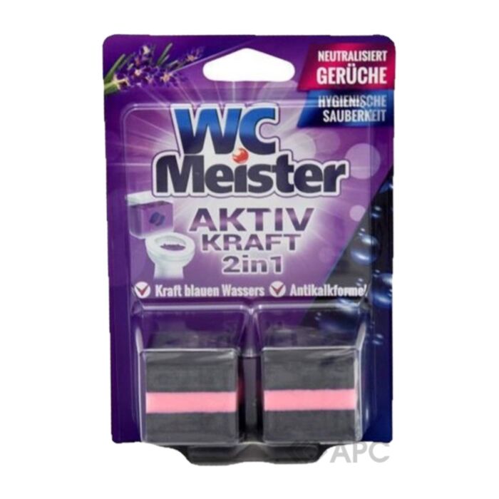 Блок підвісний для унітаза WC Meister Lavender — зручний та дієвий засіб для тривалої свіжості та чистоти у вбиральні. Проста підвісна конструкція легко кріпиться на обідок, а спеціальна комбінація компонентів легко усуває забруднення, осад, наліт, іржу та мікроби, забезпечуючи максимальну гігієнічність поверхонь. Після кожного змивання утворюється піна з освіжаючим ароматом, що запобігає утворенню відкладення вапняку та сечового каменя.