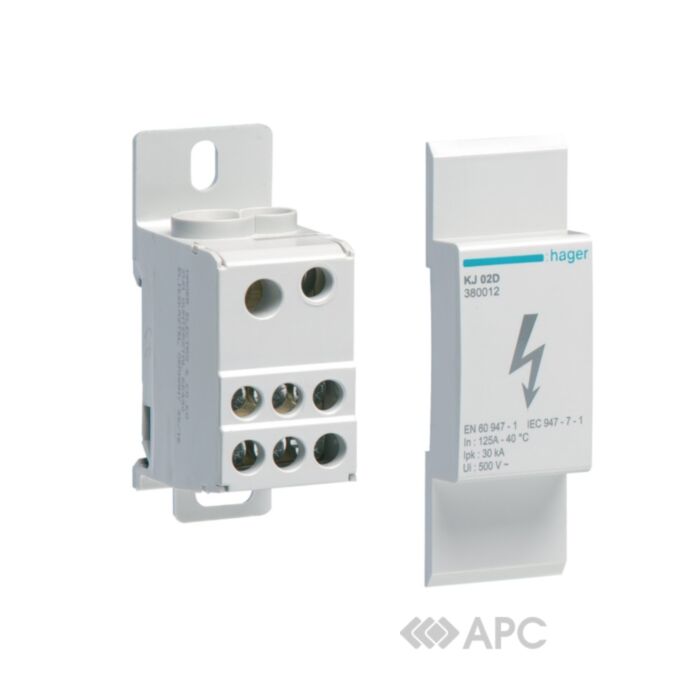 Блок розгалужуючий Hager 125A KJ02D – це високоякісний елемент електротехнічного обладнання, призначений для впорядкованого та безпечного розподілу електричної енергії всередині щитів. Пристрій має однополюсну архітектуру та розрахований на роботу з номінальним струмом до 125 A, що робить його надійним вузлом для систем із високим навантаженням. Завдяки компактним розмірам (95 мм у висоту, 45 мм у ширину та 50 мм у глибину), блок займає лише 1,5 стандартних модуля на DIN-рейці, що дозволяє раціонально використовувати простір у розподільчому щиті.