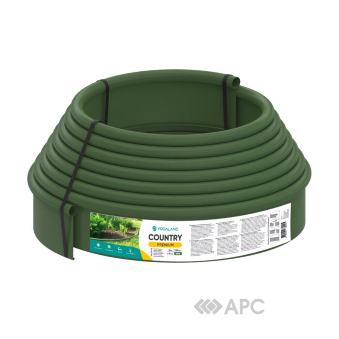 Гнучкий садовий бордюр оливкового кольору дозволяє розмежовувати різні ділянки клумб і газону. Виготовлена з пластику високої якості. Здатний обмежити розростання кореневої системи, завдяки чому краї клумби залишаються чіткими. Бордюр стійкий до впливу ультрафіолету. Є досить щільним, завдяки чому газонокосарка не пошкодить його.