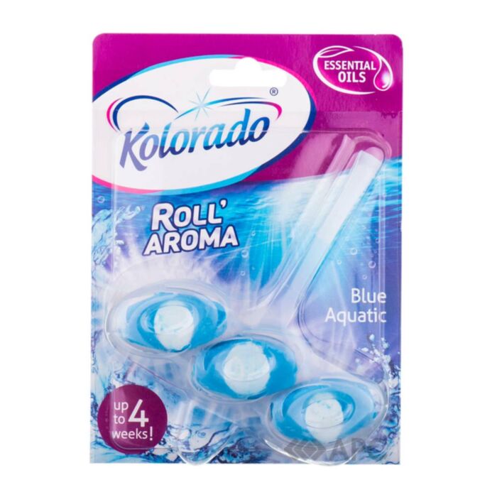 Брусок туалетний Kolorado Roll Aroma Blue Aquatic 51 г — ефективний засіб для довготривалої чистоти унітаза. Підвісний блок у сучасному дизайні легко кріпиться на обідок. Комбінація аніонних та неіонних ПАР гарантує надійний, довготривалий захист від утворення вапнякового нальоту, фосфати розчиняють наявні відкладення, а відбілювальні компоненти надають поверхням ідеальне сяяння та блиск. Легкий морський аромат ефірних олій діє як освіжувач повітря, поширюється по приміщенні та усуває неприємні запахи.