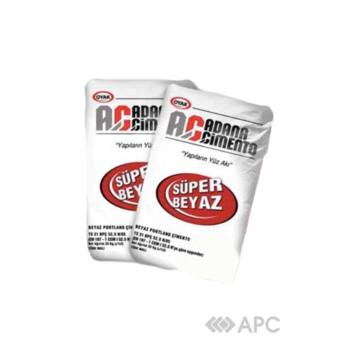 Білий цемент Adana — універсальна будівельна суміш, яку можна використовувати для приготування шпаклівок, штукатурки і затирки. Висока якість виготовлення забезпечує наступні властивості: висока міцність, швидкість висихання близько 2 годин, екологічність, пожежна безпека, стійкість до навантажень, впливу вологи і опадів, цвілі. Складається цемент з каоліну (порцелянової глини) і крейди. У компонентах суміші відсутні барвники, що забезпечує гарну білизну. Застосовують для обробки фасадів будівель. Початок схоплювання розчину: 90 хв. Марка міцності: М-600. Компанія «Adana» займається виробництвом будівельних сумішей вже більше 50 років.