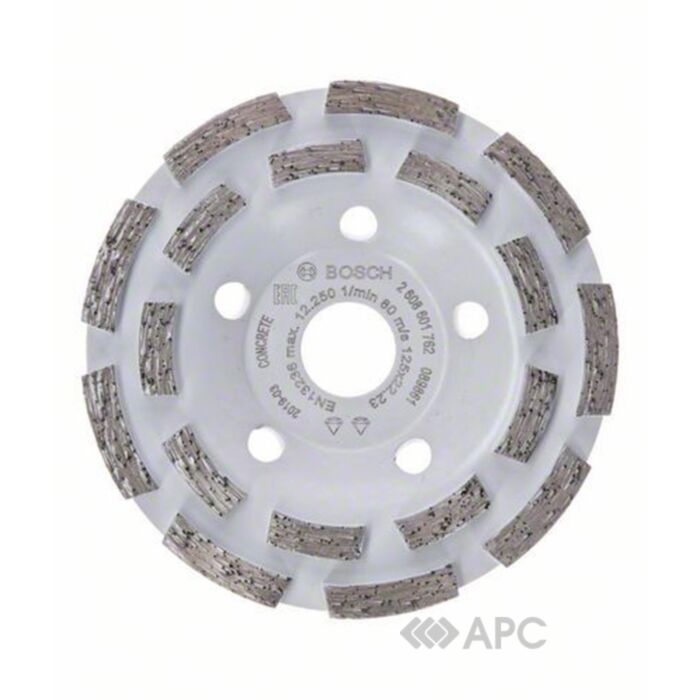 Bosch Expert for Concrete Long Life 2608601762 — спеціальний шліфувальний диск з алмазним напиленням. Використовується для грубої обробки твердих поверхонь типу бетону і каменю. Ріжучі сегменти розташовані в 2 ряди, що є оптимальним рішенням для ефективної роботи. Отвори в виробі відповідають за охолодження і продовження терміну служби.