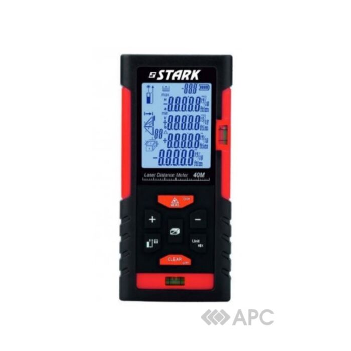 Далекомір лазерний Stark 290090041 LED LD-41 40 м – це високоточний вимірювальний прилад, призначений для швидкого та простого визначення відстаней, площ та об'ємів. Він забезпечує точні вимірювання на відстані до 40 метрів і оснащений LED-дисплеєм з підсвічуванням, що гарантує чітке відображення результатів навіть в умовах недостатньої освітленості. Крім стандартного вимірювання відстані, далекомір має функції безперервного вимірювання, розрахунку площі та об'єму, а також включає функції непрямого вимірювання за теоремою Піфагора. Прилад відрізняється компактними розмірами та ергономічним дизайном, що робить його зручним для роботи однією рукою та легким для транспортування. Він ідеально підходить для використання в будівництві, ремонтно-оздоблювальних роботах, для проєктування інтер'єрів та в інших сферах, де потрібні швидкі та точні заміри.