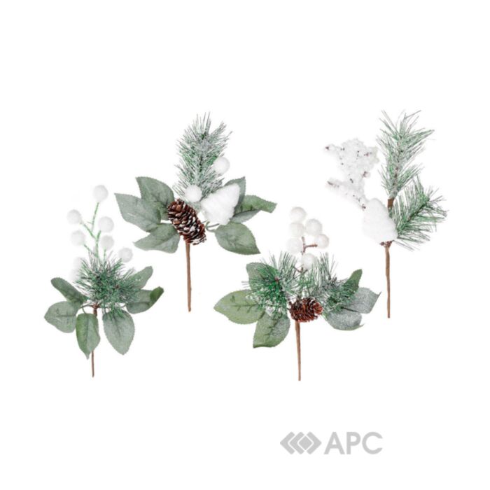 Купити декоративну новорічну гілку засніжену з хвої, листя і білих ягід БД 901-043 4 дизайни в інтернет-магазині АРС з доставкою по всій Україні.