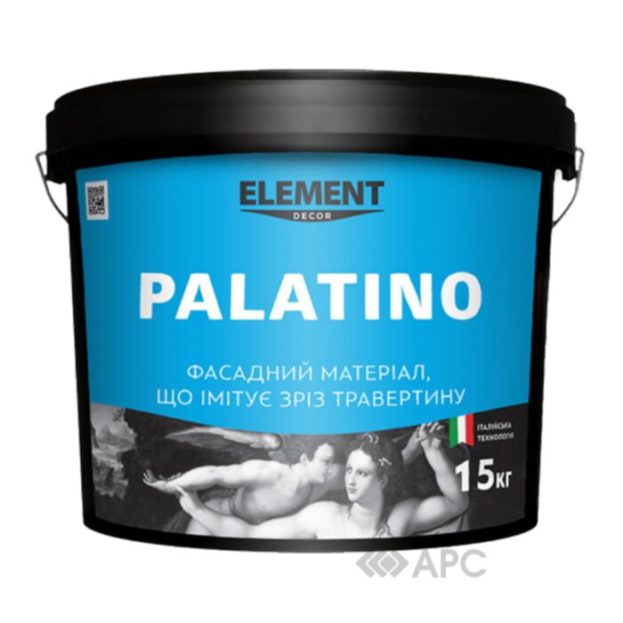 Декоративна штукатурка Element Palatino 15 кг характеризується візуальним та технічним ефектом каменю на стінах і використовується як в екстер’єрі, так і в інтер'єрі забудов. Відтворення такого зрізу реалізується завдяки присутності у складу матеріалу армуючих волокон та синтетичних наповнювачів. Він має Середземноморський характер і імітує обробку фасадів старої архітектури, але разом із надзвичайно харизматичним характером відзначається стриманістю, якістю та лаконічністю. Готове покриття надзвичайно міцне, захищає стіни від появи тріщин та вдало приховує дефекти поверхонь. Штукатурка фасаду будинку контактує з навколишнім середовищем, тому наділений атмосферостійкістю.