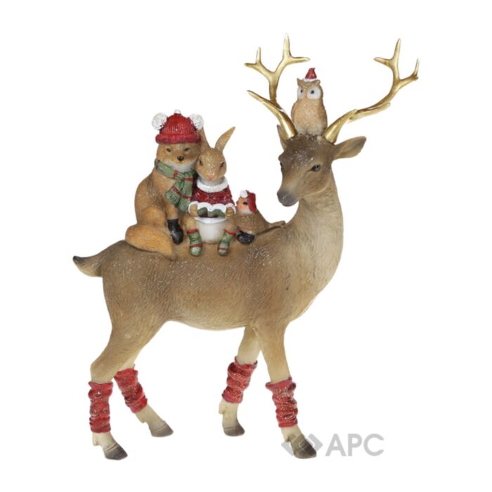 Декоративна статуетка Лісові жителі на олені BonaDi 707-739 25 см стане окрасою вашого інтер'єру, її можна поставити на стіл або журнальний столик, витончено прикрасивши декоративними стилізованими свічниками, квіткою Пуасенсіі, новорічним віночком і застеливши різдвяну скатертину.