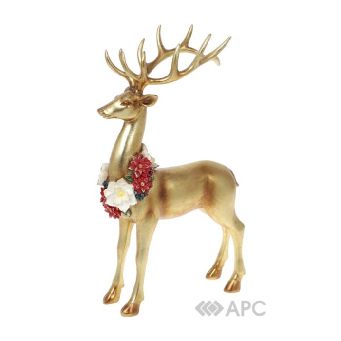 Декоративна статуетка Олень з намистом з квітів BonaDi 837-181 35 см стане окрасою вашого інтер'єру, її можна поставити на стіл або журнальний столик, витончено прикрасивши декоративними стилізованими свічниками, квіткою Пуасенсіі, новорічним віночком і застеливши різдвяну скатертину.