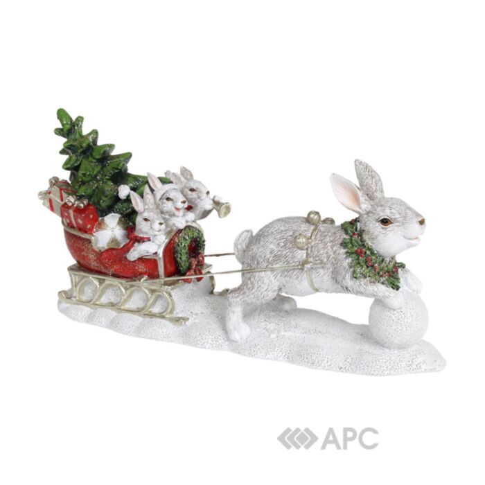 Декоративна статуетка Заєць з санями BonaDi 707-777 31 см стане окрасою вашого інтер'єру, її можна поставити на стіл або журнальний столик, витончено прикрасивши декоративними стилізованими свічниками, квіткою Пуасенсіі, новорічним віночком і застеливши різдвяну скатертину.