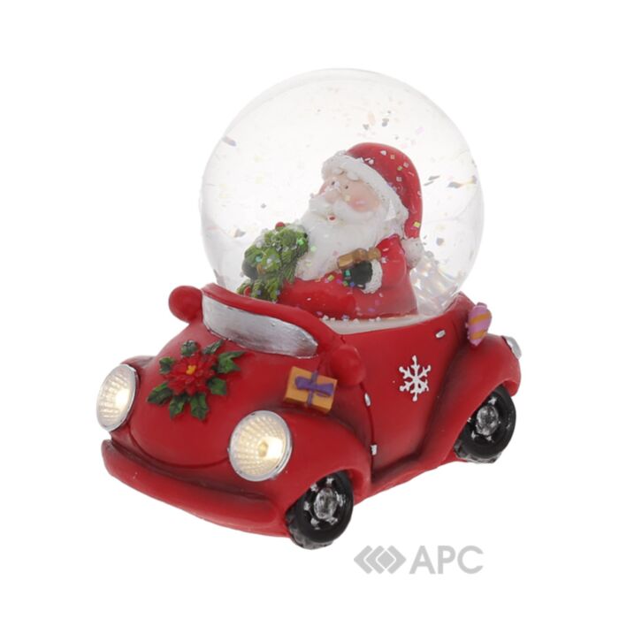 Декоративна водяна куля Автомобіль Санти Bona Di 913-314 8,5 см з LED підсвічуванням стане окрасою вашого інтер'єру, її можна поставити на стіл або журнальний столик, витончено прикрасивши декоративними стилізованими свічниками, квіткою Пуасенсіі, новорічним віночком і застеливши різдвяну скатертину.
