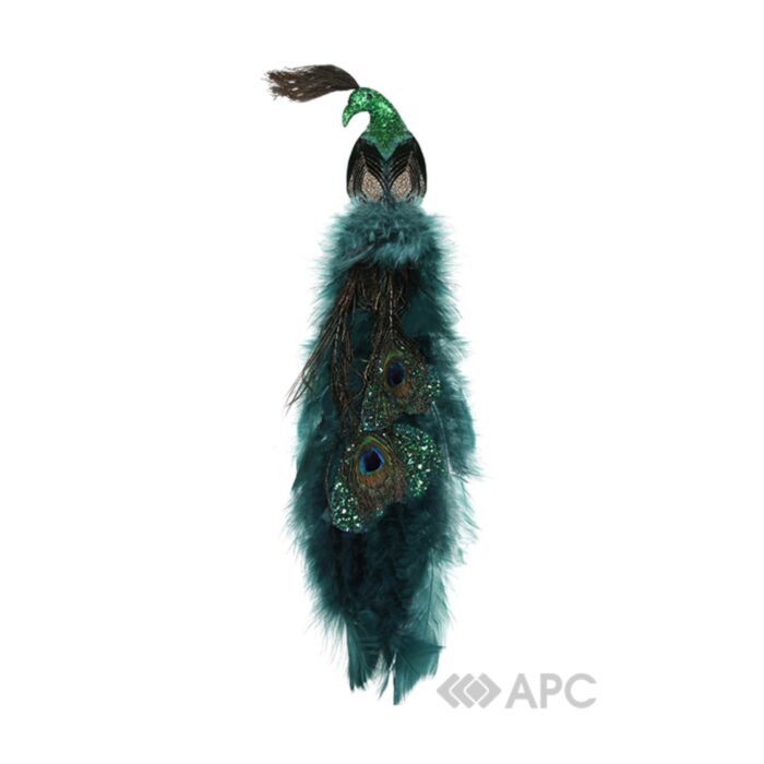 Декоративний Павич BonaDi 499-054 на кліпсі 40 см смарагдовий зелений стане окрасою вашого інтер'єру, її можна поставити на стіл або журнальний столик, витончено прикрасивши декоративними стилізованими свічниками, квіткою Пуасенсіі, новорічним віночком і застеливши різдвяну скатертину.