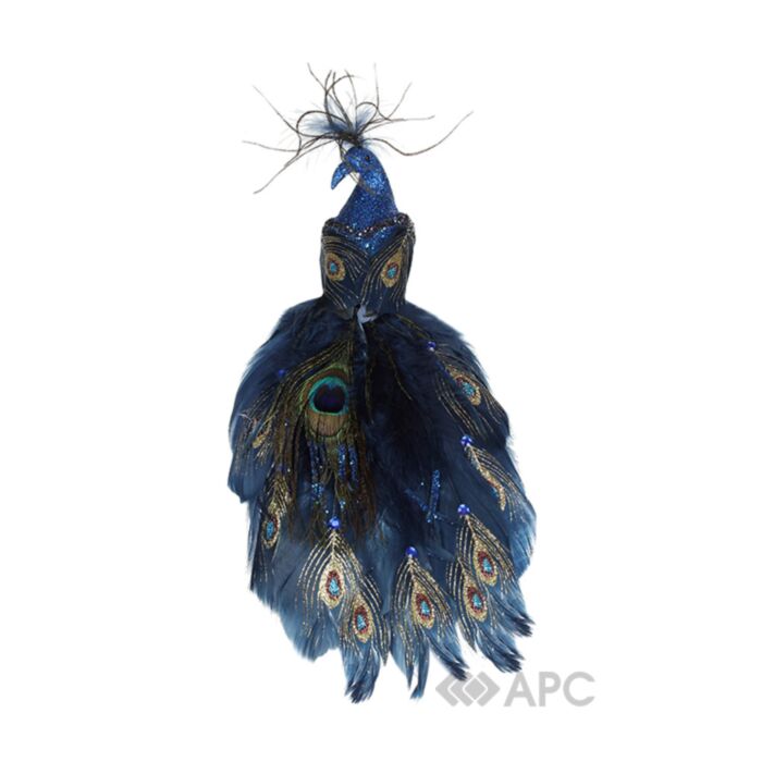 Декоративний Павич BonaDi 499-057 на кліпсі 32 см синій стане окрасою вашого інтер'єру, її можна поставити на стіл або журнальний столик, витончено прикрасивши декоративними стилізованими свічниками, квіткою Пуасенсіі, новорічним віночком і застеливши різдвяну скатертину.