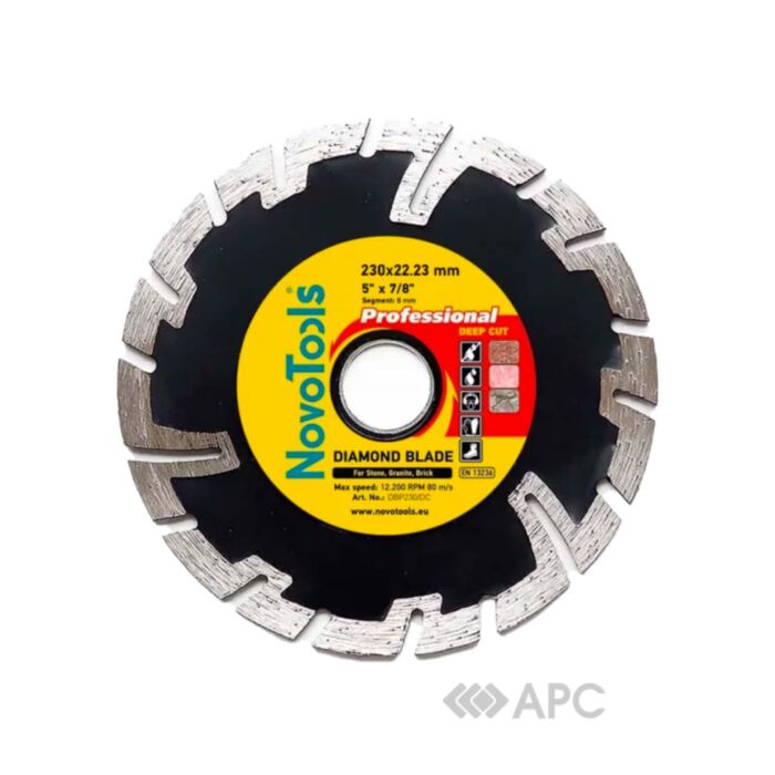 Диск алмазний NovoTools Professional deep cut DBP230/DC 230*8*22,23 мм використовується в тому випадку, коли є необхідність в рівному зрізі. Таке оснащення має підвищену міцність та підходить для більшості видів матеріалів, що робить його незамінним в арсеналі будь-якого майстра, який працює з електроінструментами. Така широка сфера застосування обумовлена підвищеною надійністю, міцністю і зносостійкістю витратного матеріалу. Ультратонка та унікальна форма алмазного круга, а також кільцеве ребро жорсткості забезпечують високу продуктивність в роботі. Ви зможете обробляти великі площі в короткі строки.