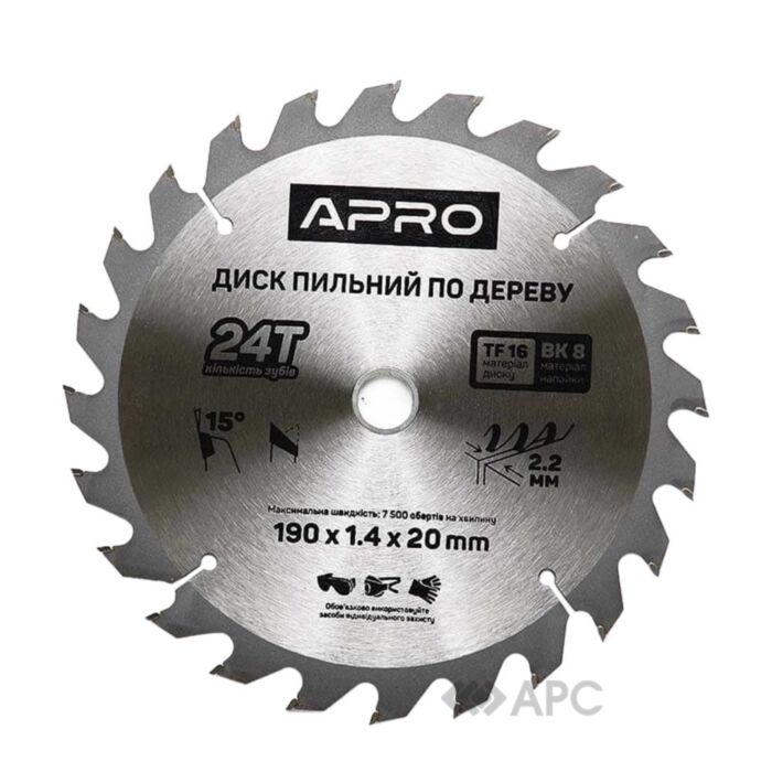 Диск пильний необхідний розхідник при роботі з циркулярними пилами та верстатами. Використовується для розпилу м'яких та твердих порід деревини, фанери, дерев'яних панелей та схожих матеріалів. При виборі пильних дисків необхідно звернути увагу на такі параметри: загальний діаметр, посадковий діаметр, товщина та кількість зубців, тип диска (монолітний для м'яких порід дерева або твердосплавний для твердих порід). Диск пильний Apro 830169 має зовнішній діаметр 190 мм, посадковий діаметр 190*20 мм та 24 зубців. Представлена модель забезпечить надійний, якісний та швидкий різ по дереву.
