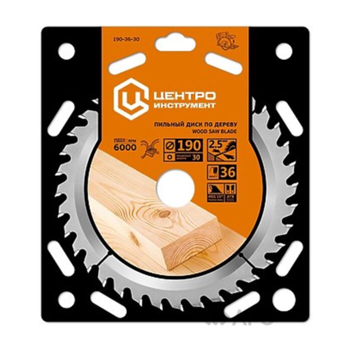 Диск пильний Центроінструмент 190-36-30 — чудовий варіант для роботи з деревиною, ДСП та ДВП плитами, фанерою тощо. 190 мм — діаметр, 20 мм — посадковий діаметр, 36 — зубців, 6000 обертів/хв. Виробник подбав, щоб кожна деталь конструкції робила процес зручним та комфортним. Завдяки наявності спеціальних отворів зменшується рівень шуму та можливість розколу. Висока точність та продуктивність відрізу забезпечена внаслідок твердосплавної напайки.