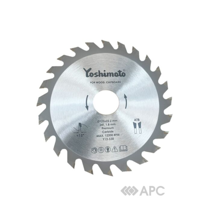 Пиляльний диск Yoshimoto використовується для поперечного, поздовжнього та кутового різання. Виріб призначений для різки вологої, сухої деревини та дерев’яних матеріалів. 24 зубця з покриттям із карбіду вольфрама (TCT) гарантують точне та швидке різання.