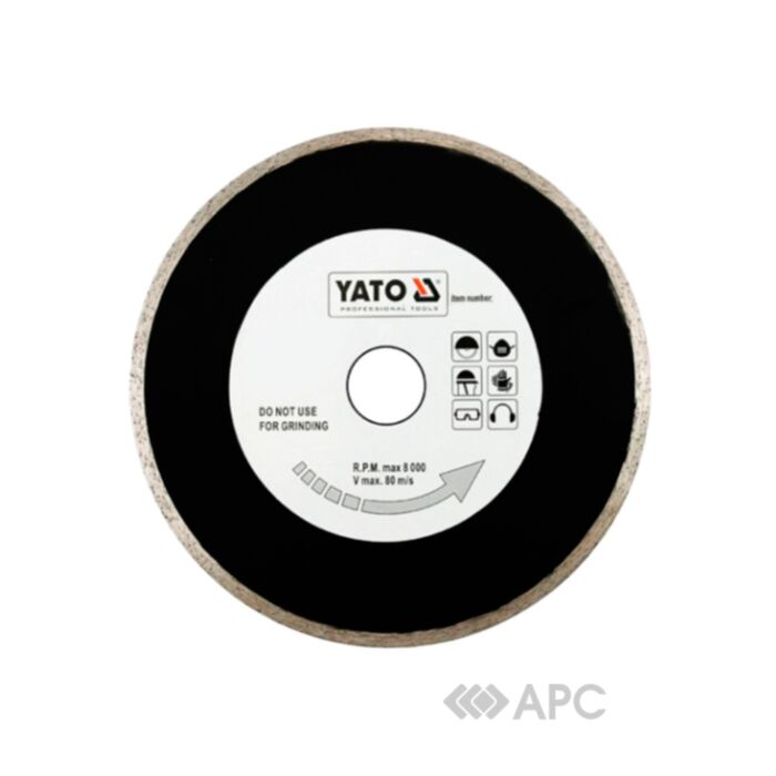 Алмазний диск YATO - змінний елемент, який використовується для кутових шліфувальних машин. Призначений для різання вологим способом кахельної, керамічної плитки та інших будівельних матеріалів. Виріб забезпечує чисте та швидке різання без надломів та надщерблення оброблюваного матеріалу.