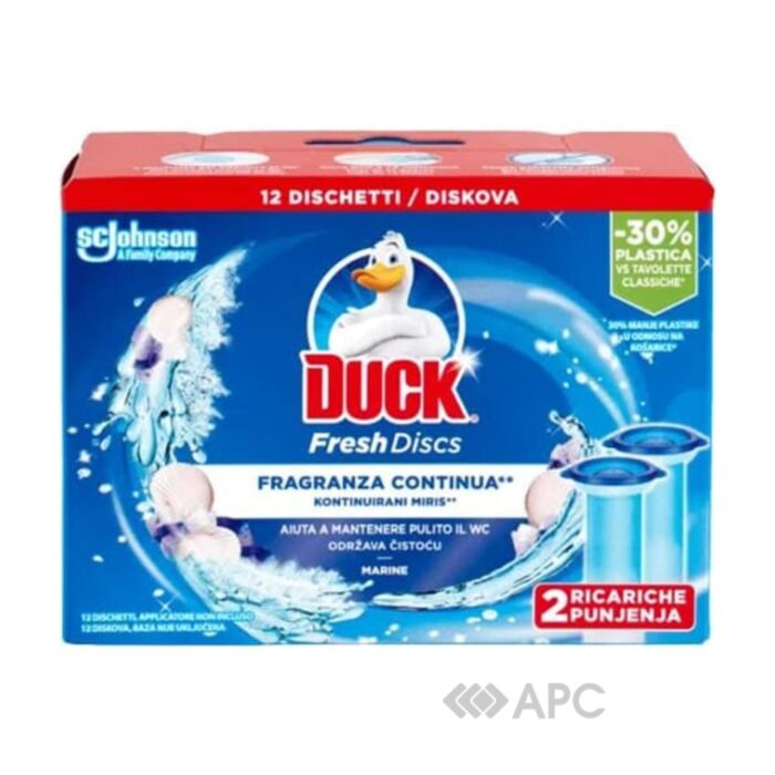Диски для унітазів Duck Морська свіжість - це ідеальний спосіб забезпечити швидке, ефективне та приємно ароматне очищення унітаза. Зроблені з високоякісного перфорованого нетканого полотна, легко вбирають бруд і жир, гарантуючи надійне прибирання.