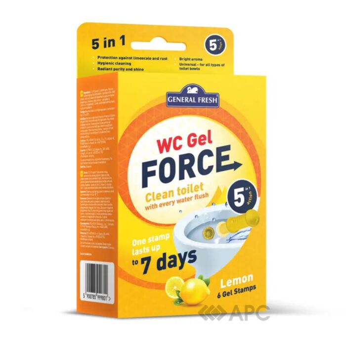 Диски для унітазів гелеві General Fresh Лимон 36 мл з активними компонентами поєднують одразу 5 функцій. Засіб захищає від утворення вапняного нальоту, іржі та сечового каменю, забезпечує гігієнічне очищення від забруднень та дезінфікує від мікробів, надає ефектний блиск поверхням, видаляє неприємні запахи й залишає освіжаючий цитрусовий аромат, при цьому підходить для різних типів унітазів.
