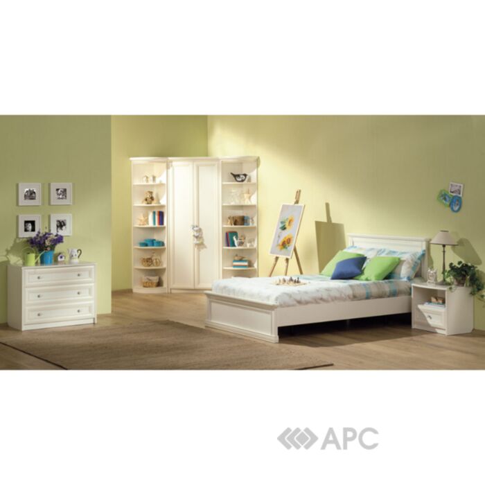 Дитяче ліжко зі спальним місцем 2000х1400 виготовлене у вишуканому класичному стилі. Меблі для дитячої Франческа проводиться в різних колірних рішеннях. Це ліжко виконане в кольорі avorio - елегантному відтінку слонової кістки, і прикрашене ніжною бежевою патиною, декоративне затемнення створює "наліт благородної старовини", ефект антикваріату.