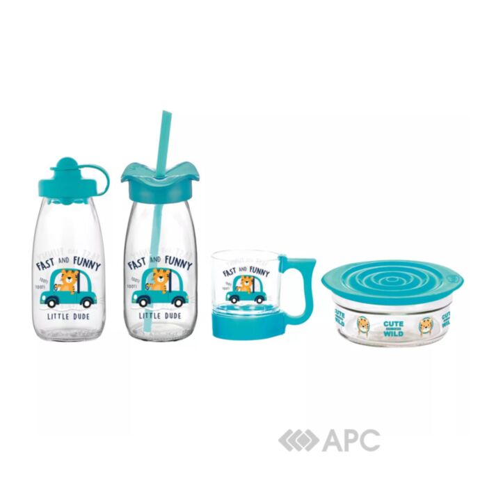 Дитячий набір посуду Vittora Boby VT-712010 бірюза — це чудовий вибір для маленьких гурманів та активних дітей. Виготовлений з високоякісного скла, гарантує безпеку, зручність користування, а також легкість миття. Яскравий дизайн у бірюзовому кольорі не лише привертає увагу малюків, але й стимулює їх апетит. У наборі 4 предмети: пляшка, стакан з соломинкою, чашка, контейнер з кришкою.
