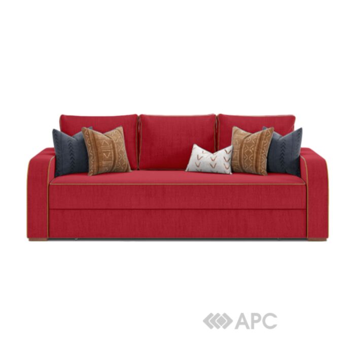Диван з вбудованим ортопедичним матрацом для щоденного використання. Відрізняється сучасною зовнішністю і підлокітниками новаторської форми з м'якими обрисами округленого зовнішнього кута. Підлокітники оббиті високоякісною штучною шкірою. Висувна частина дивана пересувається на роликах зі спеціальним гумовим покриттям, яке запобігає пошкодженню підлоги. Обладнаний ящиком для постільної білизни. Диван комплектується трьома декоративними подушками на «блискавках», наповненими матеріалом «Холлофайбер» - синтетичним гіпоалергенним волокном, яке завдяки своїй структурі не злежується і гарантує тривале збереження форми виробу. Воно екологічно чисте і нетоксичне, не горить і не вбирає вологу і запахи.