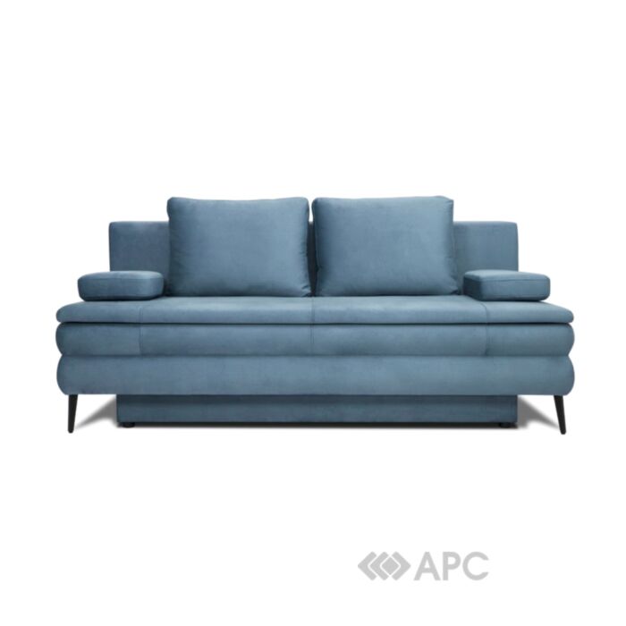 Тканинна оббивка синього, нейтрального кольору, легко вписується в будь-який дизайн, гарантує м'якість, а також зручність. В основі матраца лежить пружинний блок типу Pocket Spring, а також пінополіуретан, які створюють максимальний комфорт під час сидіння чи сну. Серцевина ліжка виготовлена з букових ламель, які володіють максимальною міцністю та еластичністю, забезпечуючи надійну підтримку спини та тривалість служби дивану.
