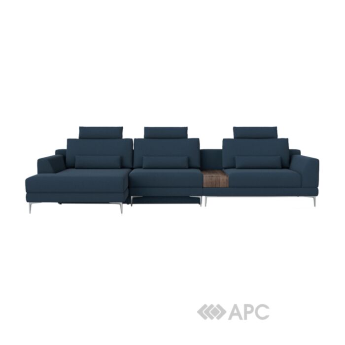 Наявність дерев’яної стільниці дозволяє поставити чашку, телефон або книгу у будь-який момент. Каркас та основа теж виготовлені з дерева, що гарантує надійність, а також довговічність. Стильний, сучасний дизайн та практичний, синій колір ідеально доповнять будь-який інтер’єр приміщення. Розміри спального місця 150х205 см, загальна ширина 390 см, висота 115, глибина 160 см.