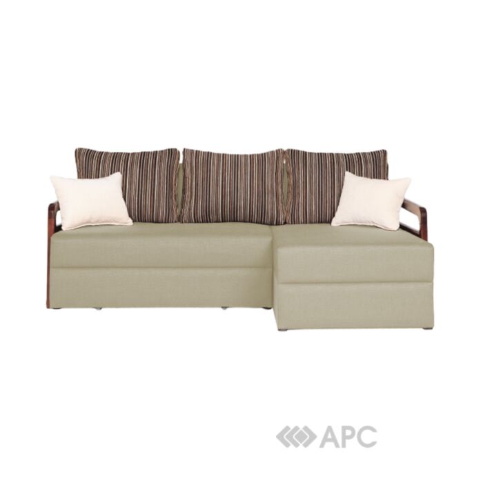 Рухома частина дивана оснащена роликами зі спеціальним покриттям, що запобігає пошкодження підлоги. Передбачено два ящики для зберігання білизни. Тонкі дерев'яні підлокітники надають легкість конструкції і дозволяють раціонально використовувати простір. Диван комплектується декоративними подушками: трьома великими на застібці «блискавка» та двома поменше без застібки. Подушки наповнені матеріалом «Холлофайбер». Це синтетичне гіпоалергенні волокно, яке завдяки своїй структурі не злежується і гарантує тривале збереження форми виробу. Воно екологічно чисто і нетоксичне, не горить і не вбирає вологу і запахи. Підлокітники можуть бути виконані в одному з чотирьох варіантів кольору на ваш вибір. Проводиться право-і лівобічний варіант.