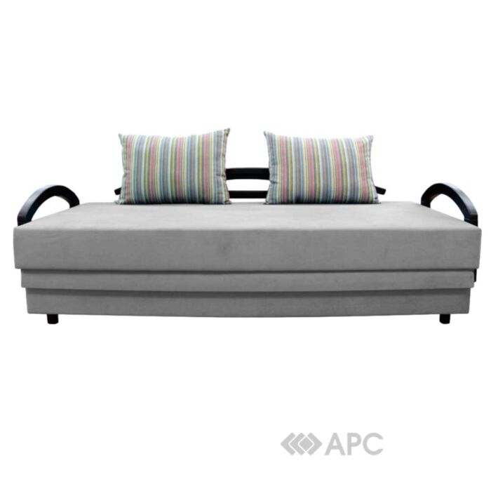 Диван створений на базі унікального механізму трансформації «Шахар», в якому механізм відсутній як такий - це виключає можливість поломки. Базова модель передбачає два спальних місця, одне з яких комплектується ортопедичним матрацом з пружинним блоком, друге - без пружинного блоку, але з ящиком для постільної білизни. Можлива зміна базової комплектації, в вигляді двох ортопедичних матратцев замість білизняного ящика. Призначений для щоденного сну. Дві декоративні подушки, що створюють безліч індивідуальних налаштувань для комфортного відпочинку, входять в комплект. Витончені підлокітники і спинка зроблені з натурального дерева і можуть бути виконані в одному з чотирьох варіантів кольору на ваш вибір.