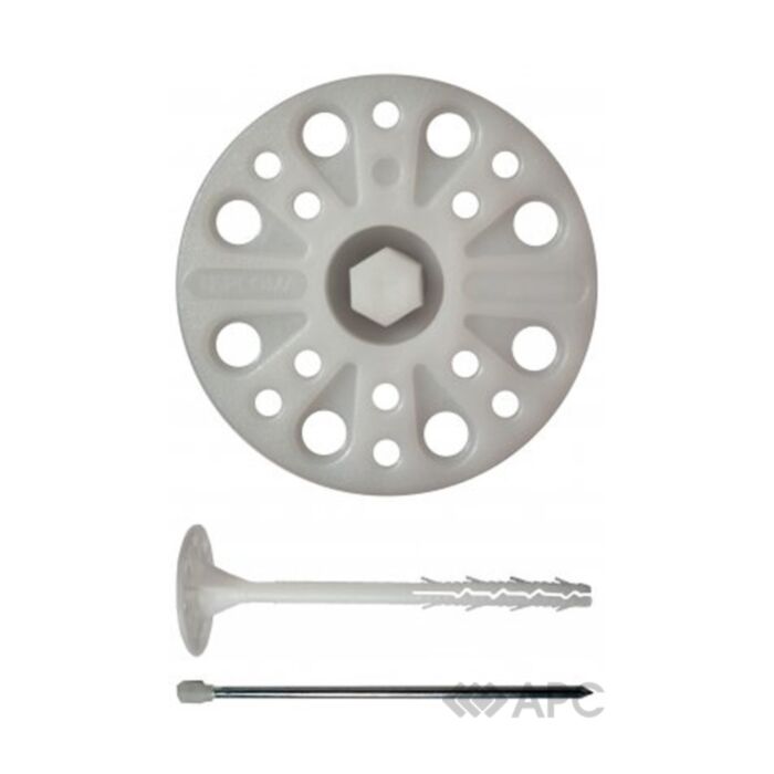 Термоізоляціорнний дюбель 10х300 мм комплектується цвяхом з цинковим покриттям, яке надає конструкції довговічності за рахунок стійкості до корозії. Призначений для кріплення плит утеплювачів до поверхонь, виконаним з бетону або цегли. Широко застосовуються дюбелі при утепленні будинків пінопластом та іншими матеріалами