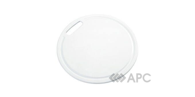Дошка обробна кругла виготовлена з міцної якісної пластмаси, що не тупить ніж. Має жолобок по краях дошки для стікання рідини і залишків продуктів, що дозволяє не бруднити стіл навколо дошки при нарізуванні продуктів. Перевага пластикової дошки - це гігієнічність, дошка не вбирає запахи і соки від продуктів, тому це прекрасний вибір для оброблення м'яса і риби.